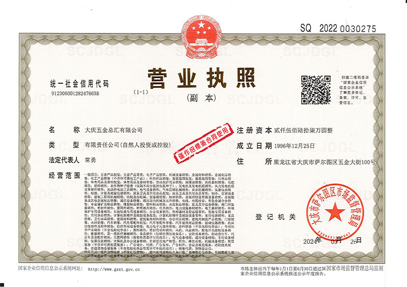 大慶五金總匯有限公司123 地址:黑龍江省大慶市薩爾圖區(qū)五金大街100號(hào) 郵編:163001 總機(jī)電話:0459-6655615、5854444 傳真:0459-6327257