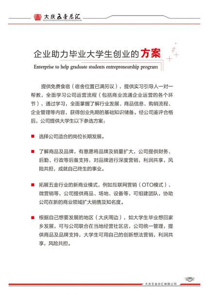 現(xiàn)階段我公司提出多種切實(shí)可行的創(chuàng)業(yè)方案供大學(xué)生選擇,并將創(chuàng)業(yè)方案印制成宣傳手冊,在會上對大學(xué)生進(jìn)行發(fā)放,并對畢業(yè)大學(xué)生進(jìn)行了詳細(xì)的解讀,大學(xué)生對創(chuàng)業(yè)方案也提出了各自的見解。交流互動(dòng)中,企業(yè)更加堅(jiān)定了信念,在萬眾創(chuàng)新,全民創(chuàng)業(yè)的浪潮中,公司會發(fā)掘出一批具有夢想的合作者,助力大學(xué)生創(chuàng)業(yè)成功,一同尋求、探索企業(yè)創(chuàng)新經(jīng)營的突破口。